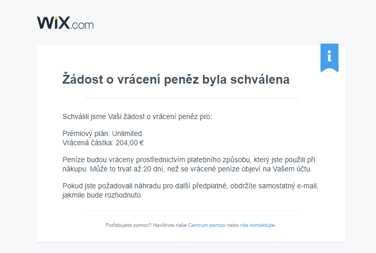 Žádost Wixu byla posouzena pozitivně, takže nám vrátí 5 tis Kč a to se hodí, ne? :)
